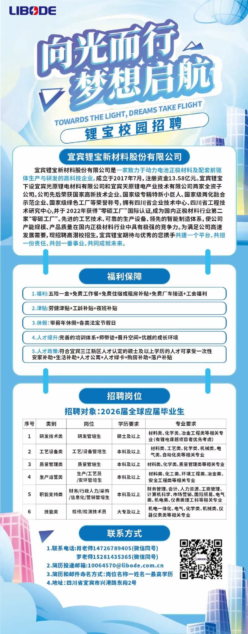 🔥热忱欢迎四川轻化工大学符合条件的同学们踊跃咨询、投递简历,也欢迎大家积极推荐,宜宾锂宝期待与优秀的你携手共进,共筑新能源产业发展未来![抱拳]