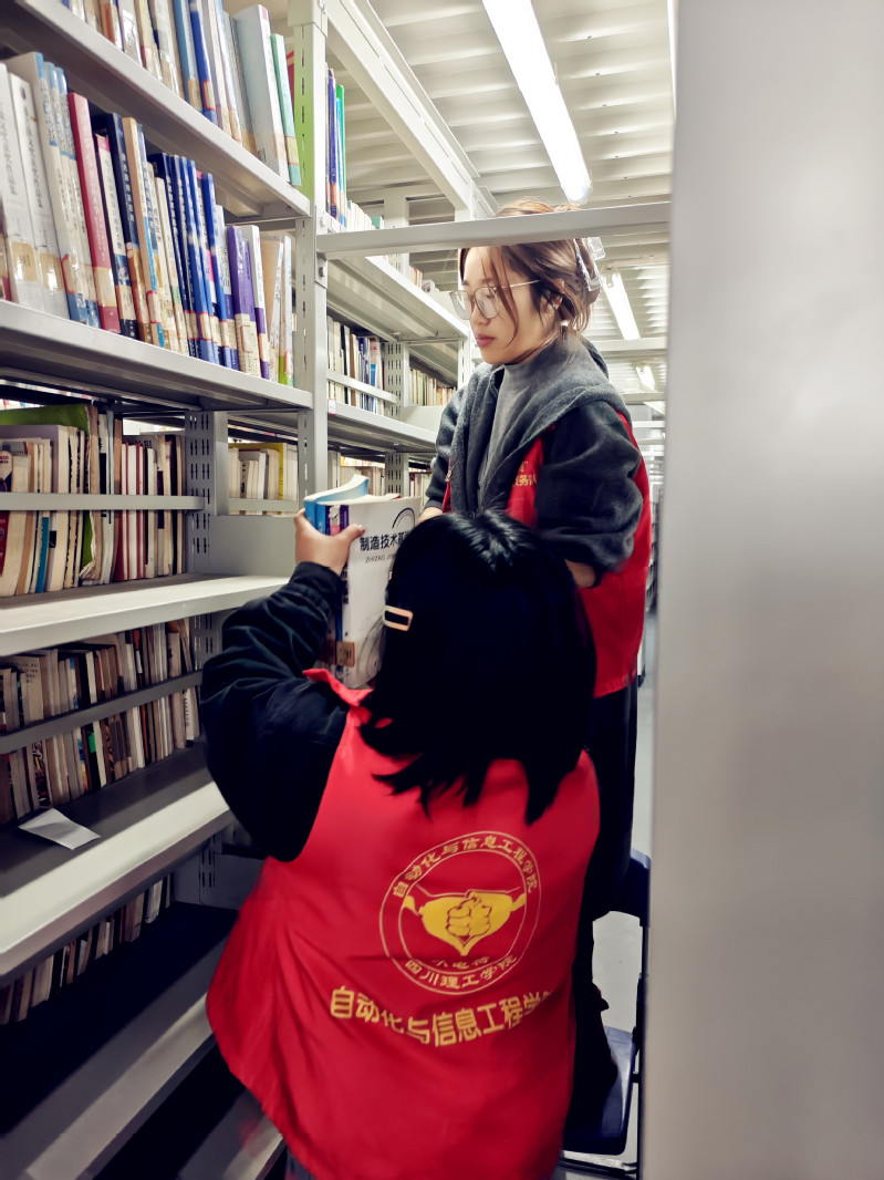 为优化借阅环境、营造良好阅读氛围,2025年11月24日至28日,自动化与信息工程学院“小电荷”青年志愿服务队在宜宾校区图书馆开展了“书香焕新计划”志愿服务活动。