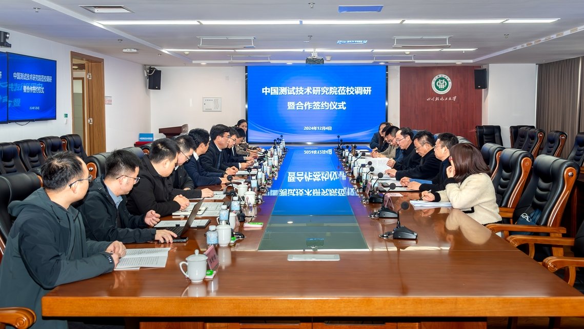 12月4日下午,中国测试技术研究院与四川轻化工大学战略合作协议签约仪式在宜宾校区综合楼424会议室隆重举行。学校党委书记张力,党委常委、副校长罗惠波,中国测试技术研究院党委书记、院长周传军,党委委员、副院长李怀平,宜宾市人民政府二级巡视员申华林出席会议。会议由学校党委常委、副校长吴亚东主持。