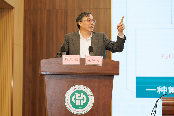 2025年4月7日下午,中国科学院院士、上海有机化学研究所先进氟氮材料重点实验室主任卿凤翎研究员莅临我校李白河校区,为师生带来题为《化学是中心科学吗?—兼谈有机氟材料创制》的学术报告。报告会由学校党委常委、副校长罗惠波教授主持。