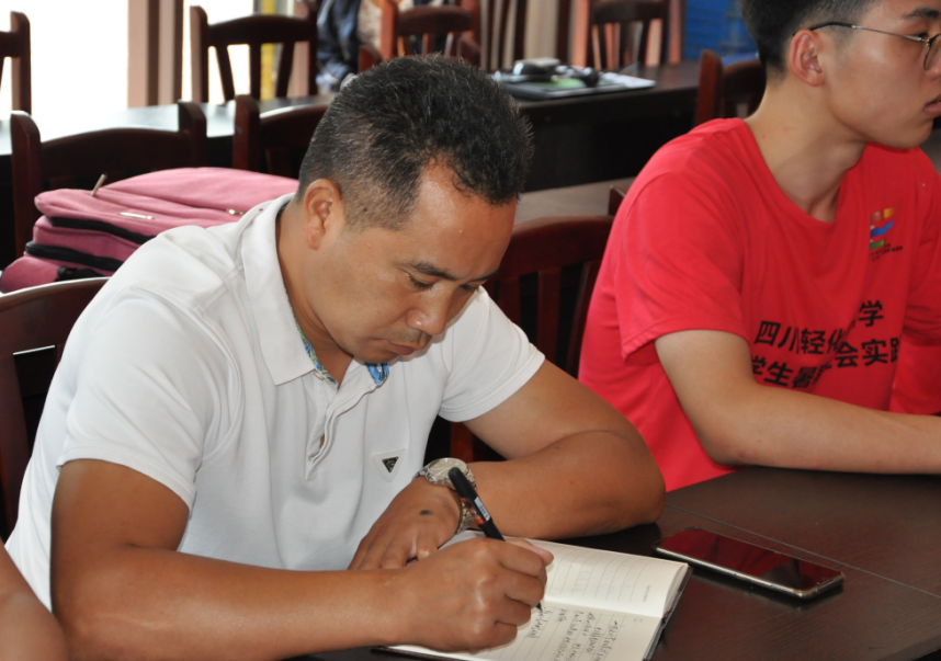 随后,队员康赛为村干部和驻村干部进行了办公软件的培训。培训主要包含Word基本操作、Excel常规操作、PPT的制作以及其他常用软件的使用。最后,队员们一对一的辅导部分村干部使用QQ和微信进行办公。培训结束后,队员们同村委会一起参加了农民夜校和八一建军退伍军人。“农民夜校”是一项主要针对农村地区、提供农民群众学习各类知识文化、技能技术的政策举措,是精准扶贫、乡村振兴计划在农村的具体实践,应村干部们的热情邀请,带队教师何芬利用这次社会实践的机会,给中坝村的村民们分享在电商方面的一些建议,在“互联网+”新时代,农业产业发生了重大调整,农业在逐步的向着产业化、现代化、标准化的方向转型升级,中坝村的佛手瓜、茵红李、跑山鸡等优势产业想要走出大山,就要顺应时代的潮流,充分利用电商平台,销往全国各地,这对当地的经济发展是非常有利的。正好,队员李美鑫和杨莹怡两名同学是电子商务专业大三在读学生,张虎、罗丹、康赛和黄星宇是计算机科学与技术专业大三在读学生,张虎在开发小程序方面已经有了丰富的经验,他们表示回校以后将继续研究怎样将中坝村的特色产业更好的外销。