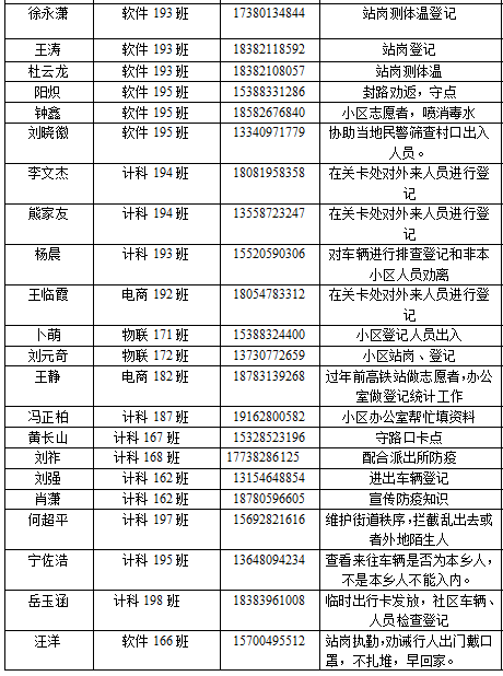 2020年注定是不平凡的一年,面对突如其来的新型冠状病毒感染的肺炎疫情,一场没有硝烟的战斗打响了。有人冒着生命危险,冲在防疫第一线,他们用自己的生命守护着大家,与病魔博弈;也有一些人为了维持城市的正常运转,依旧奋战在自己的岗位。在计算机学院,有这样一群可爱的学生,明明可以好好待在家,却闲不住,他们主动请缨,到自己社区的卡点做志愿工作,据不完全统计,计算机学院共有38名学子参与到疫情志愿者的行列,他们当中有的是退伍军人,有的是共产党员、团员,也有群众,但他们有一个共同的身份,就是四川轻化工大学学子。