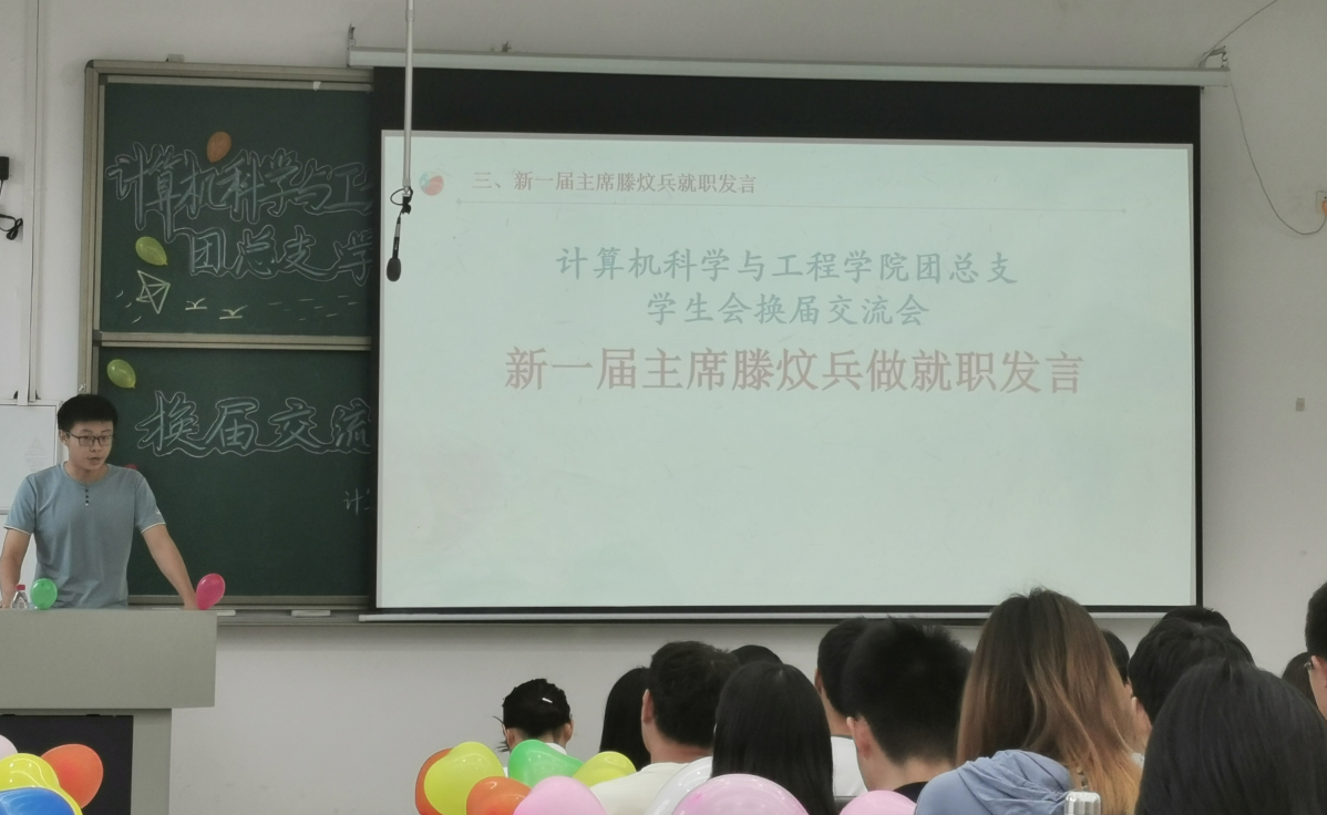 9月28日12:40,计算机科学与工程学院第十七届团总支学生会换届交流大会在宜宾校区A10-121教室成功举行,学院院长吴亚东、学院党总支副书记何洪英、学生会指导老师陈茂礼以及学工办临时负责人何芬、辅导员蒋欢参会,学院第十七届学生会全体成员以及十六届部分学生会成员参加。