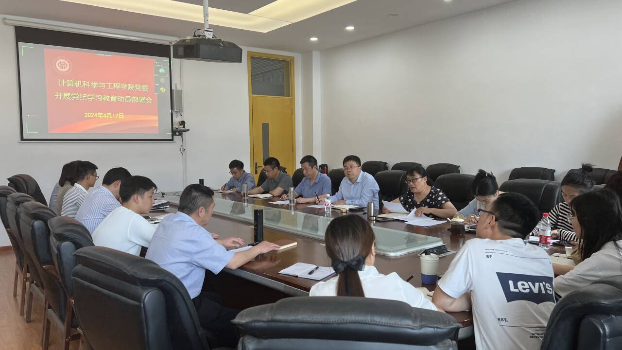 4月17日下午,计算机科学与工程学院党委在宜宾校区A6-521会议室,召开党纪学习教育动员部署会议。学院党委委员、处科级干部、支部书记、系中心主任参加本次会议,会议由学院党委书记叶晓彤主持。