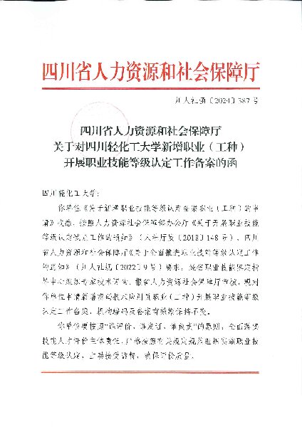 近日,四川省人力资源和社会保障厅发文认定我校为密码技术应用员(四级)职业技能等级资质。