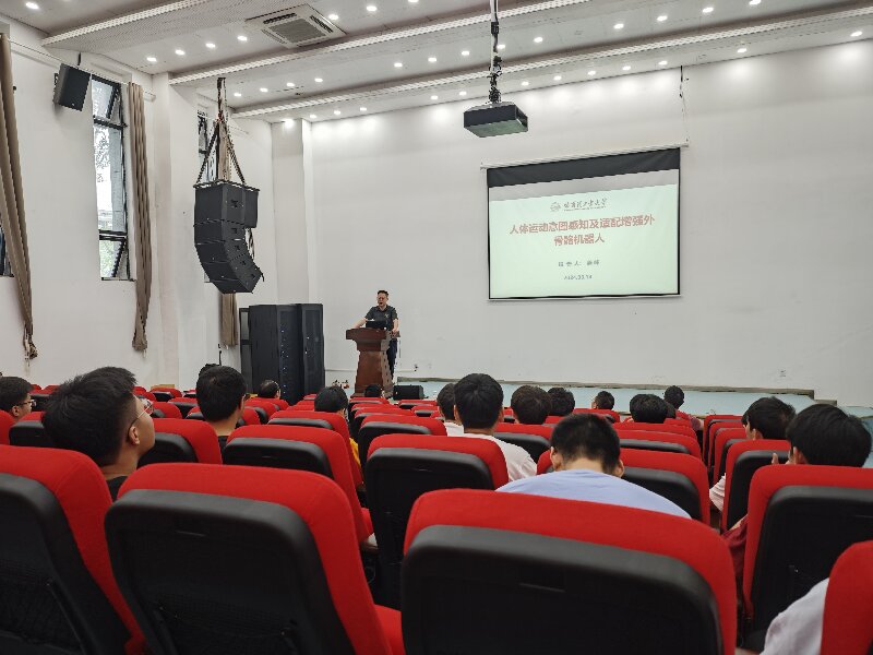 姜峰教授长期从事柔性机器人与人机交互领域的研究,在该领域积累了丰富的理论与学术成果。在讲座中,姜教授重点介绍“人体运动意图感知适配增强人机交互柔性外骨骼技术”的最新进展及其在服务士兵、辅助工业生产和日常生活中的潜在应用,分享了其团队在这一领域的研究成果,并展望未来柔性外骨骼技术的发展方向与挑战。讲座深入浅出,内容丰富,现场互动热烈,同学们表示出了对该领域的强烈兴趣。