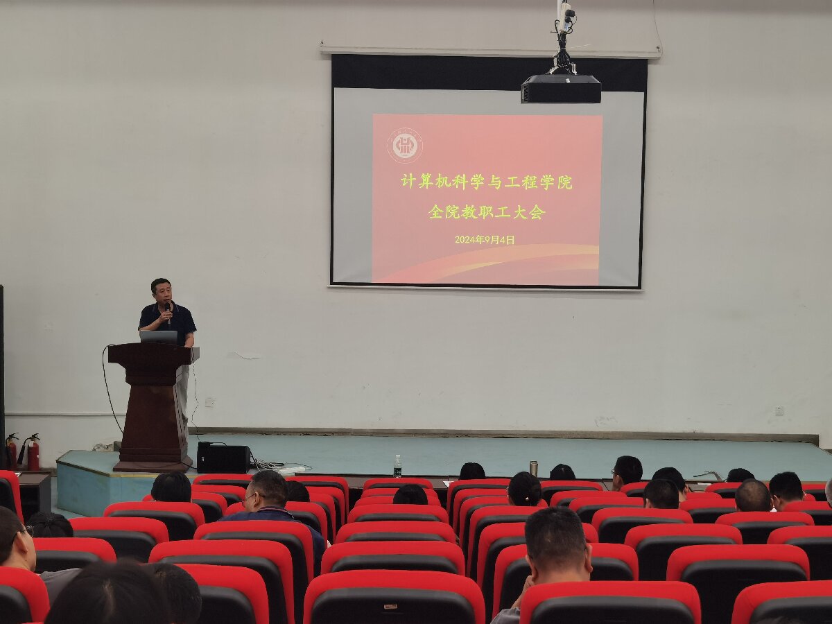 9月4日,计算机科学与工程学院在宜宾校区A6-221召开全院教职工大会,总结暑期工作成绩,部署新学期工作。全院教职工参会,会议由杨跃寰主持。
