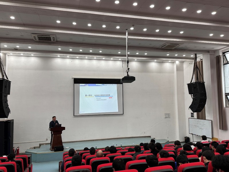 随后,饶云波副教授聚焦“大语言模型赋能科研”,详细讲解了ChatGPT、文心一言、Deepseek等大语言模型的应用场景以及私有化大模型本地部署方式。他现场演示了如何利用大语言模型进行文献检索、数据分析、论文写作等,并分享了使用技巧和注意事项。