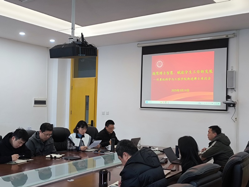 为加强人才队伍建设,促进新进博士教师快速融入学院发展,3月19日下午,计算机科学与工程学院在宜宾校区A6-521会议室举行新进博士教师座谈会。学院党委书记叶晓彤,党委副书记、纪委书记刘红梅,副院长刘小芳、石睿,相关部门负责人及新进博士教师齐聚一堂,共话教育使命,共谋发展蓝图。