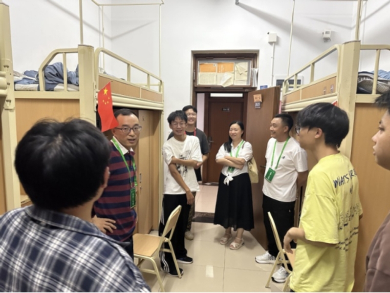 当晚,学院领导带领辅导员深入新生寝室进行走访,亲切慰问刚入校的同学。他们仔细查看宿舍设施,询问报到流程是否顺利,叮嘱同学们要注意用电安全,鼓励大家尽快适应大学生活,与室友友好相处,共同营造温馨和谐的宿舍环境。