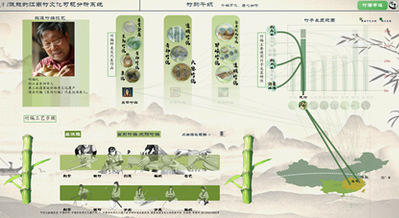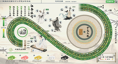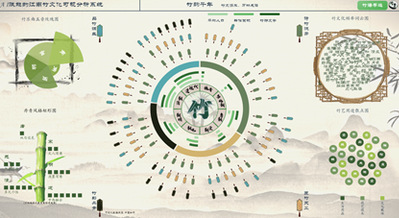 “竹韵千年”:以大屏可视化方式展示竹文化历史演进脉络,通过八卦令牌图呈现魏晋至现代的诗词、画作与文物数据。