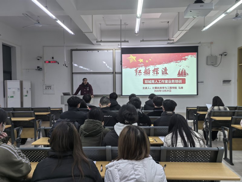 为破解自贡、宜宾双城办学的地理分隔难题,打通育人链条“断点”,近日,计算机科学与工程学院“红船摆渡”双城育人工作室业务培训顺利开展。本次培训由工作室负责人何芬主持,参与“红船摆渡”活动的学生党员、学院党委副书记马将及相关学生党支部书记参会,标志着学院党建引领下的跨校区思政育人新模式正式启动。