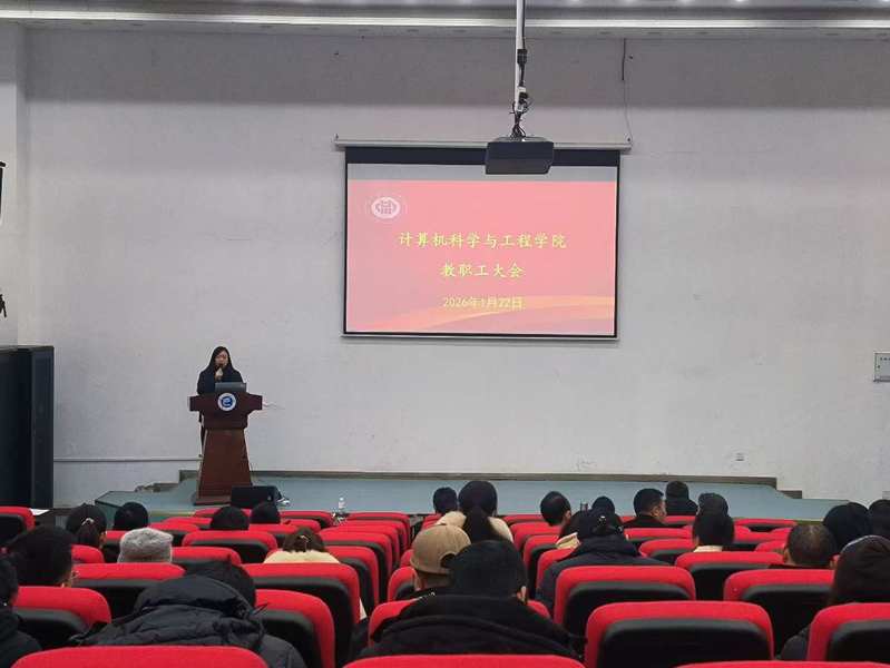 1月22日,计算机科学与工程学院在宜宾校区A6-221召开教职工大会,学院全体教职工参加会议,会议由学院党委书记张潇文主持。