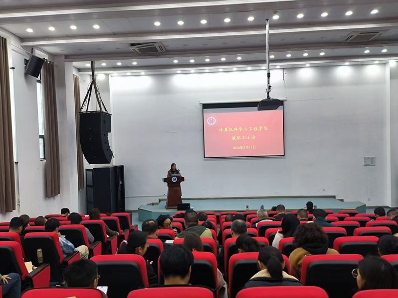 2026年3月11日,计算机科学与工程学院在宜宾校区召开新学期全体教职工大会,谋划部署新学期各项工作,统一思想、凝聚共识,为学院高质量发展谋篇布局,学院全体教职工参加会议,会议由学院党委书记张潇文主持。
