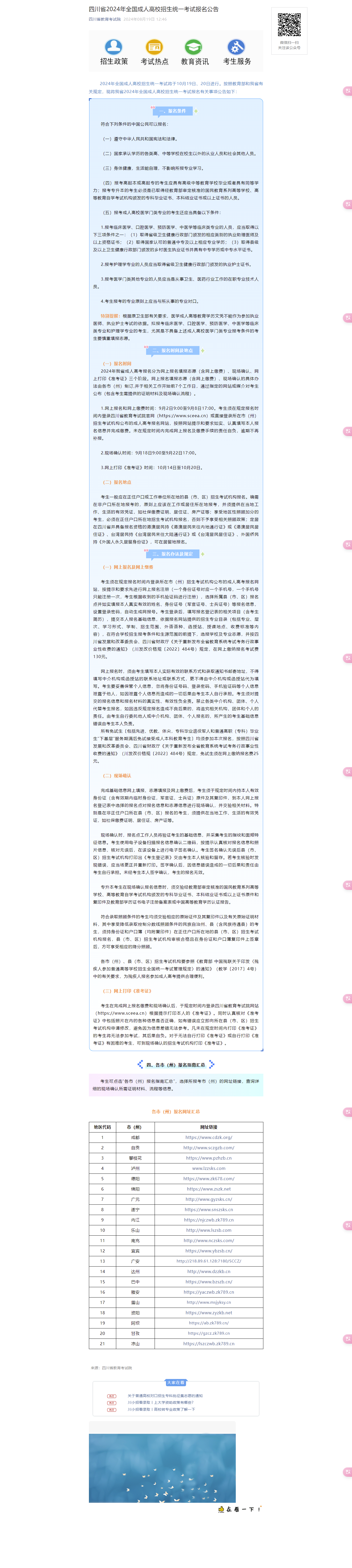 四川省2024年全国成人高校招生统一考试报名公告