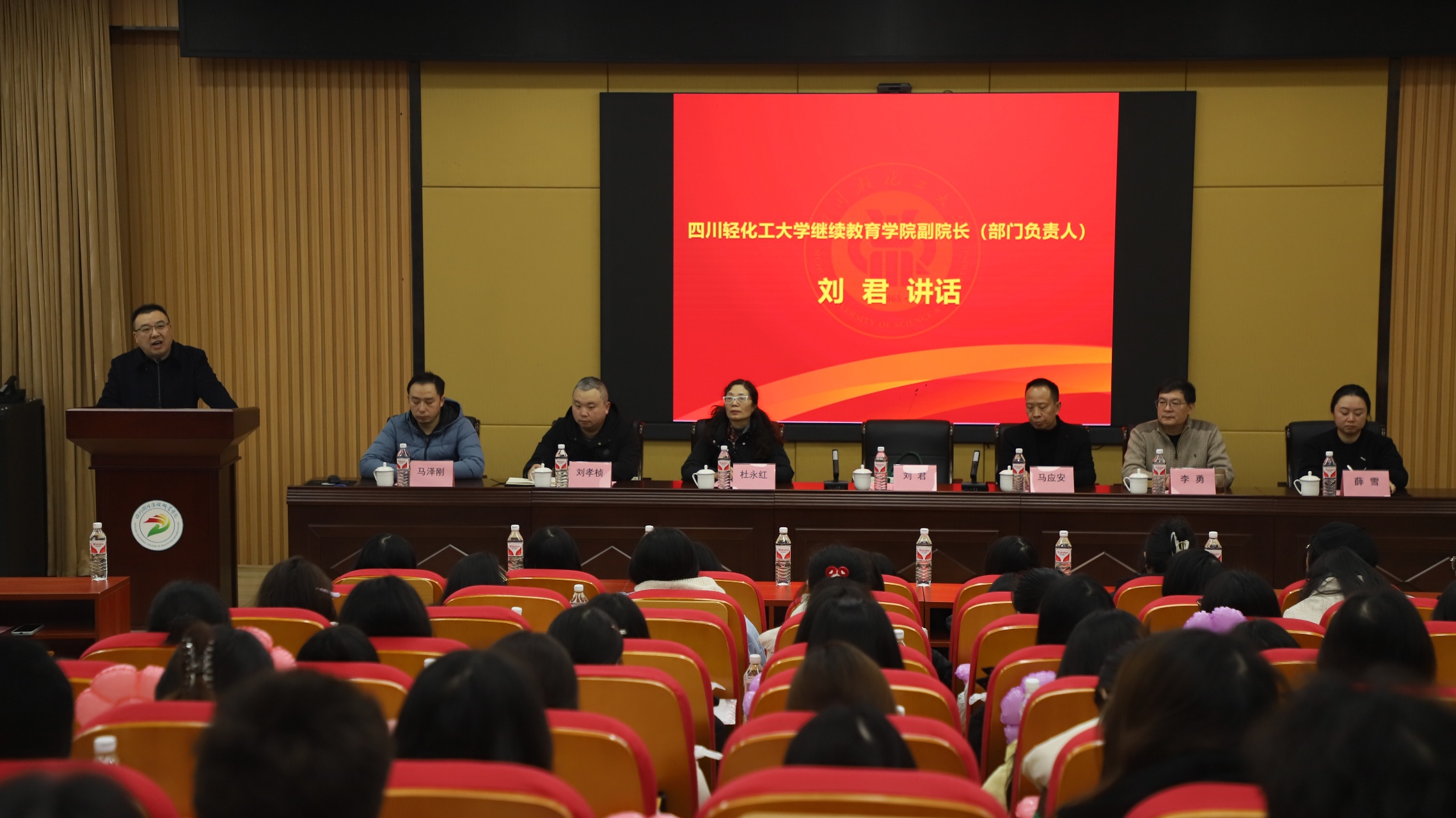 刘君代表学校致辞,对同学们选择我校提升学历表示欢迎。随后以三个问题:一是为什么要选择高等教育自学考试?二是自学考试社会认可度高吗?三是为什么要选择四川轻化工大学举办的自学考试?通过自问自答的方式为同学们做了一堂生动的入学教育课。希望同学们以更加饱满的热情、更加昂扬的斗志,投入到学习和生活中去,并勉励同学们在未来的自学考试学习过程中满怀希望、坚定信念、不懈努力、勇往直前。