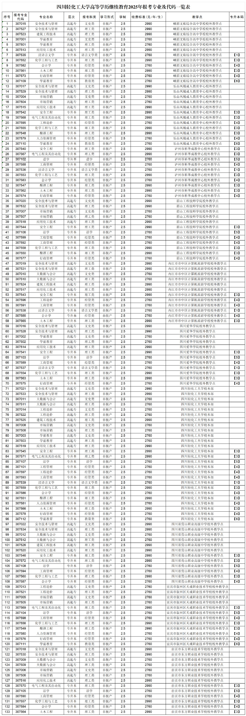 四川轻化工大学高等学历继续教育2025年报考专业及代码一览表