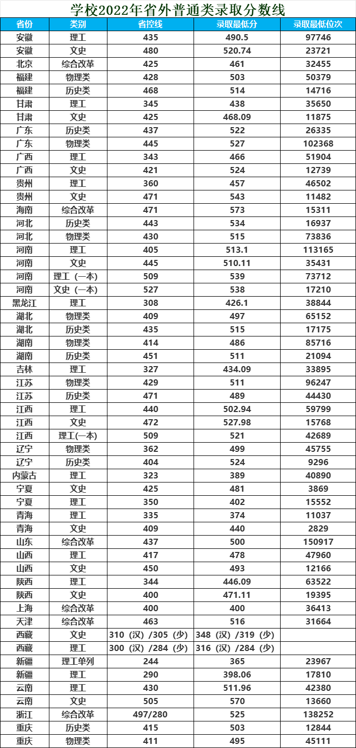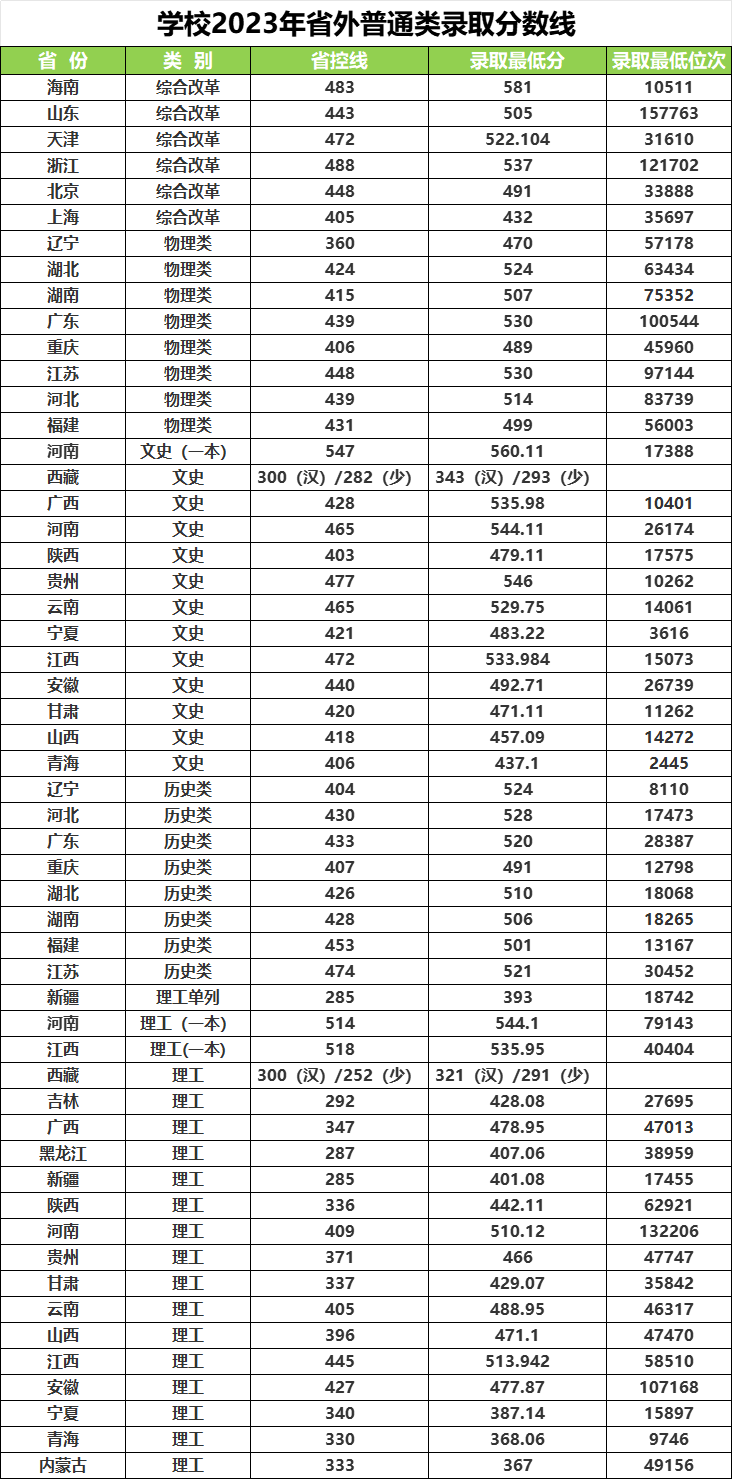 省份 | 类别 | 录取分数(高/低) | 省份 | 类别 | 录取分数(高/低) |
