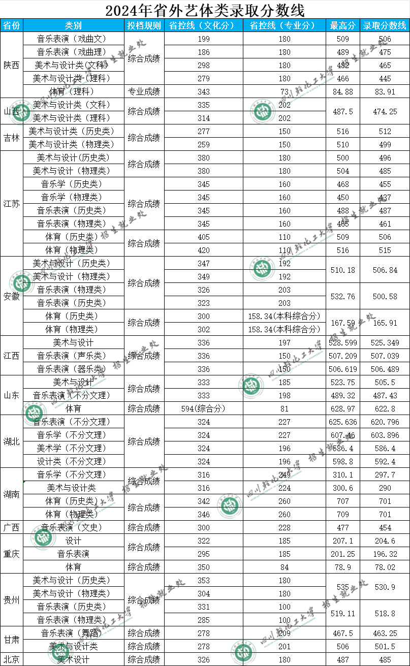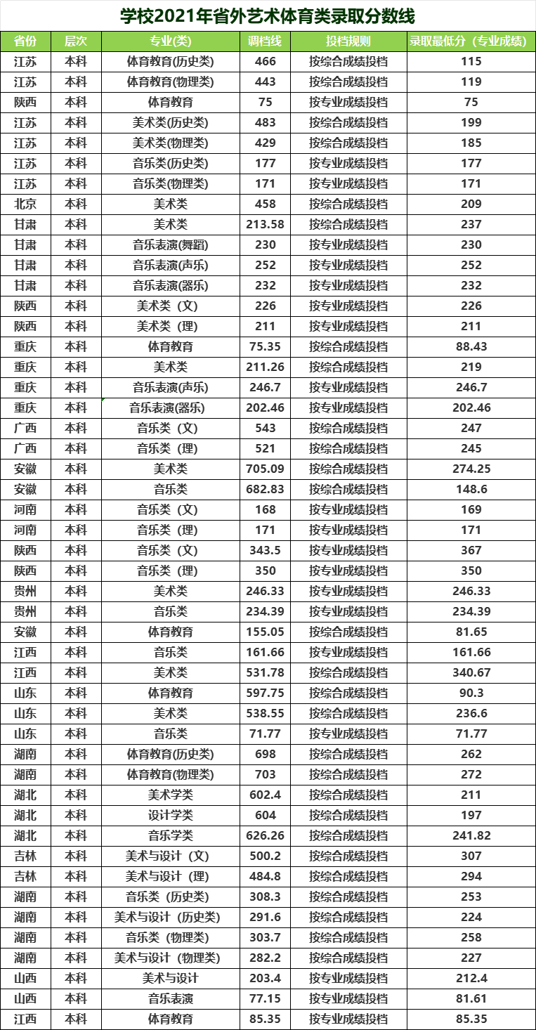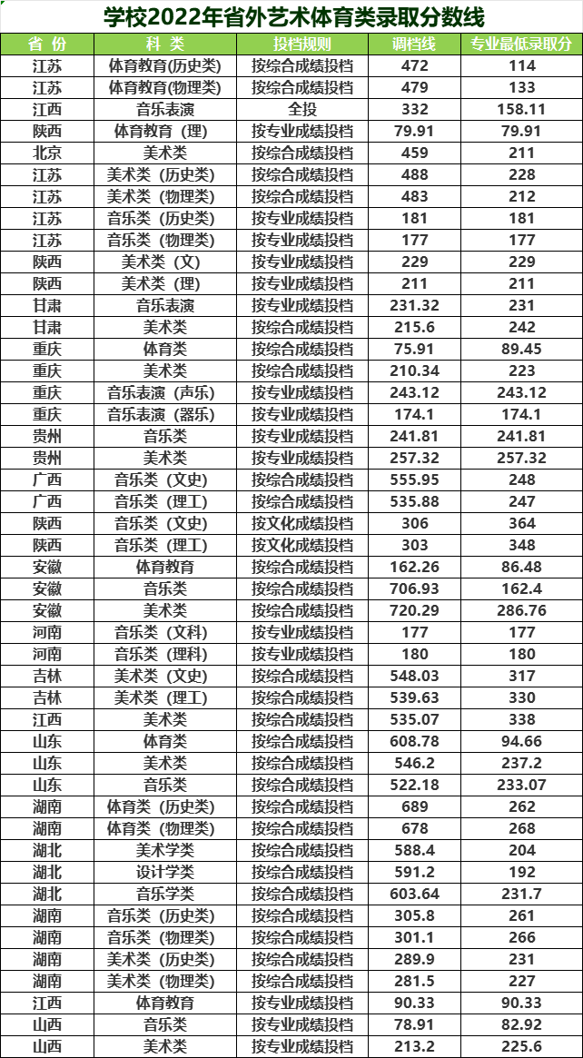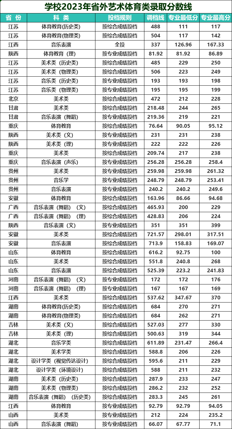 学校2020年省外艺术体育类录取分数线