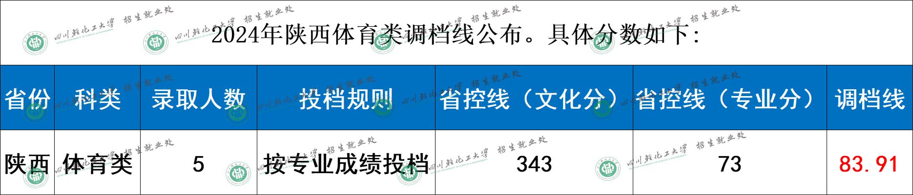 四川轻化工大学2024年陕西体育类调档分数线