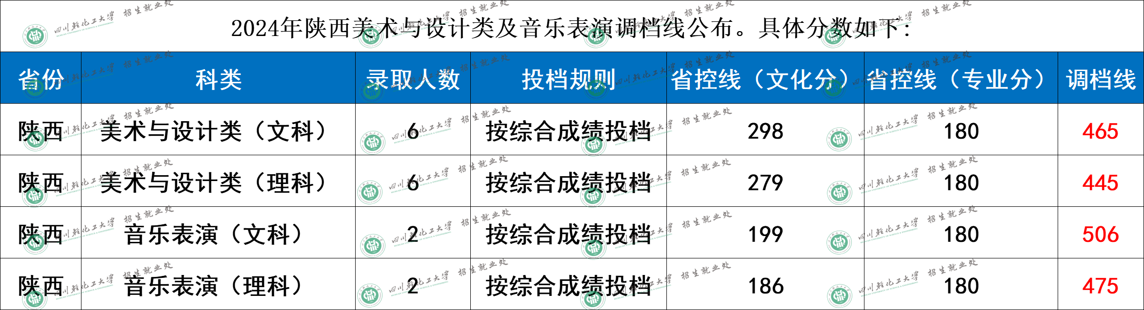 四川轻化工大学2024年陕西美术与设计类及音乐表演调档分数线