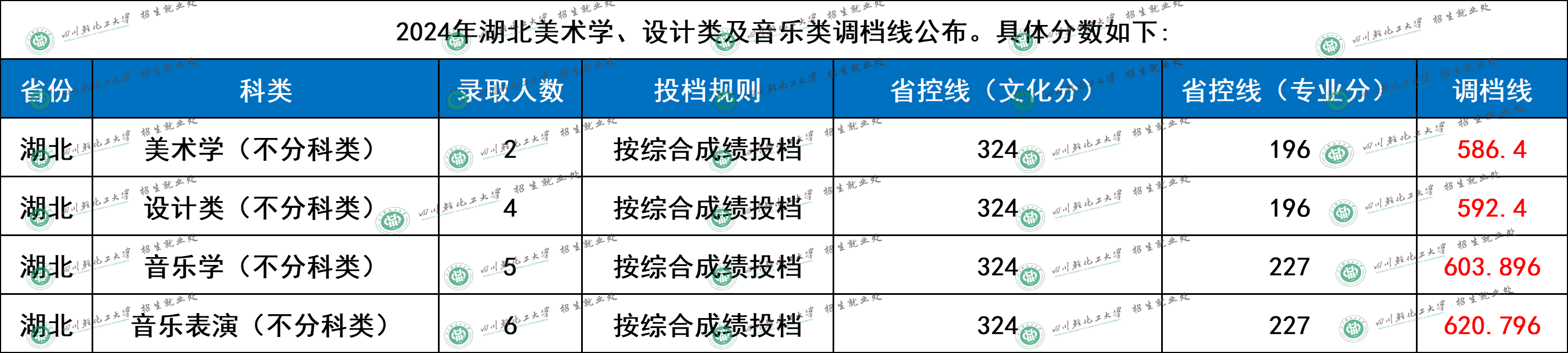 四川轻化工大学2024年湖北美术学、设计类及音乐类调档分数线