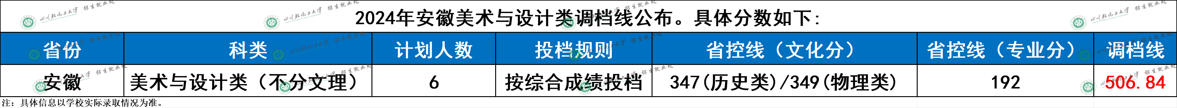 四川轻化工大学2024年安徽美术与设计类调档分数线