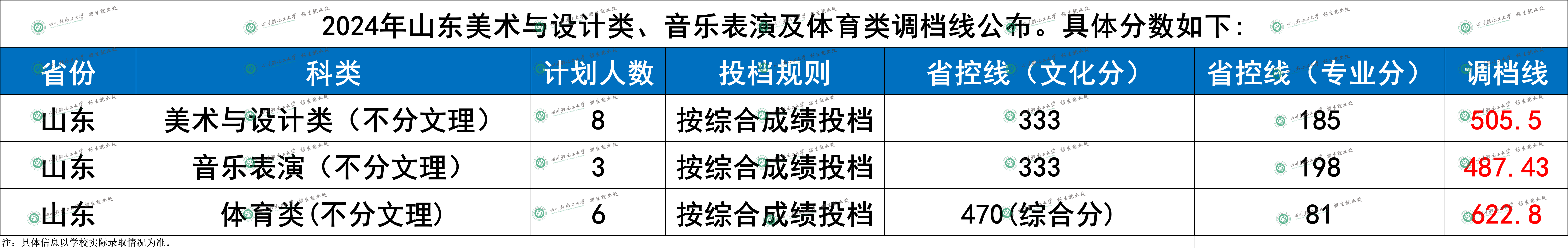 四川轻化工大学2024年山东美术与设计类、音乐表演及体育类调档分数线