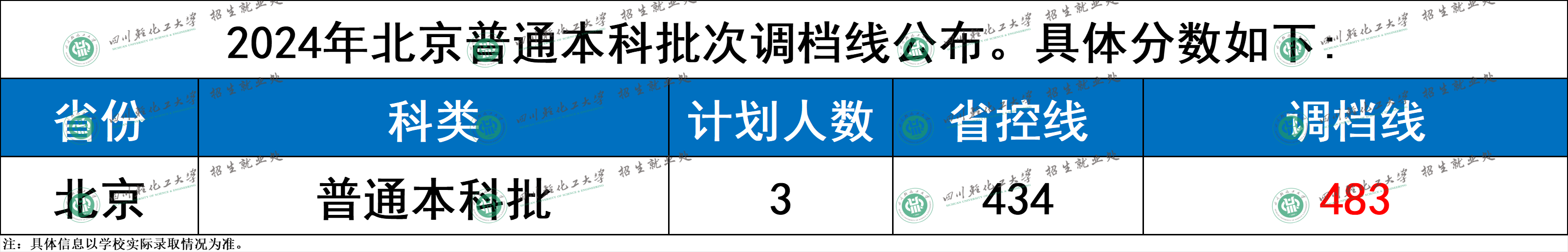 四川轻化工大学2024年北京普通本科批次调档分数线