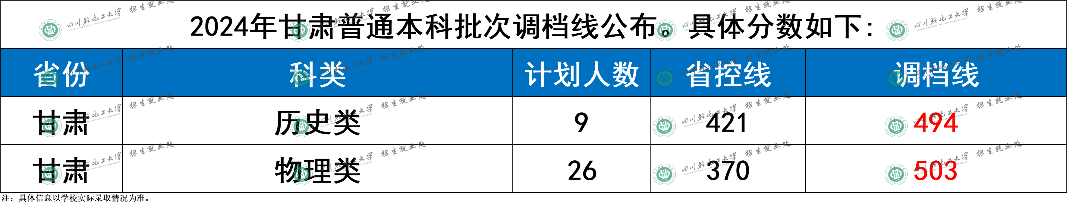 四川轻化工大学2024年甘肃普通本科批次调档分数线