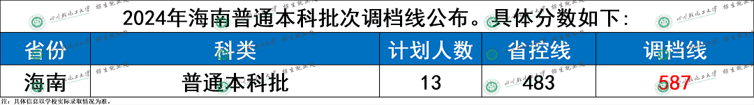 四川轻化工大学2024年海南普通本科批次调档分数线