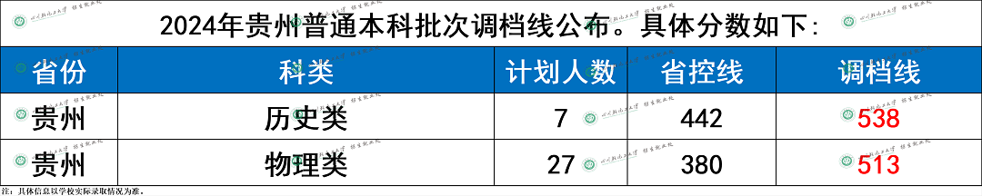 四川轻化工大学2024年贵州普通本科批次调档分数线