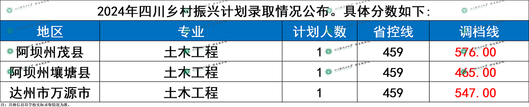 四川轻化工大学2024年四川乡村振兴计划调档分数线