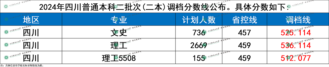 四川轻化工大学2024年普通本科二批(二本)调档分数线