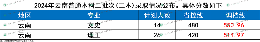 四川轻化工大学2024年云南普通本科二批(二本)调档分数线