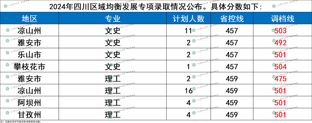 四川轻化工大学2024年四川区域均衡发展专项计划调档分数线