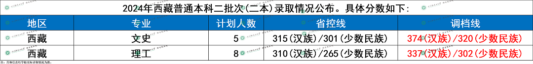 四川轻化工大学2024年西藏普通本科二批(二本)调档分数线