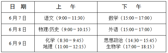 原“少数民族语言授课为主”学生和“加授少数民族语文”学生参加高考的,除参加全国统考科目和选择考科目考试外还须参加本类别的民族语文科目考试,考试时间分别安排在6月10日的9:00—11:30、9:00—11:00。