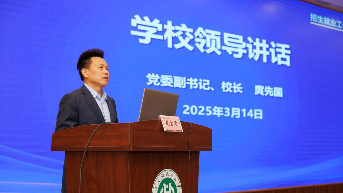 为深入贯彻落实党中央、国务院关于高校毕业生就业工作重要决策部署,抓住春季促就业攻坚期、招生宣传关键窗口期,切实做好学校2025年招生就业工作。3月14日,学校在李白河校区办公中心学术报告厅召开2025年招生就业工作会。学校党委书记张力,党委副书记、校长庹先国,党委常委、副校长胡光忠,党委常委、副校长吴亚东出席会议并讲话。会议由庹先国主持。
