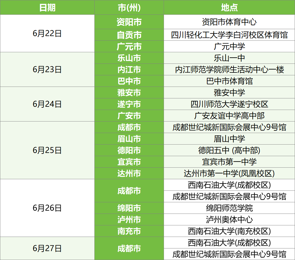 四川轻化工大学6月本科招生咨询活动日程安排(四川省内部分)