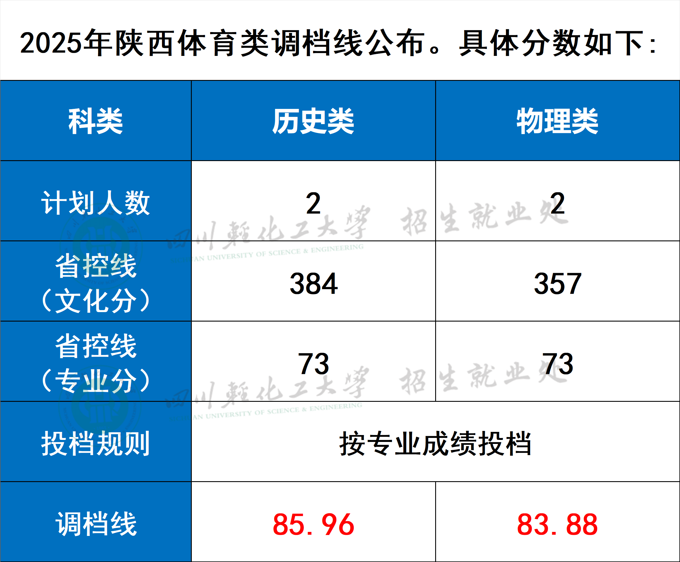 四川轻化工大学2025年陕西体育类调档分数线公布