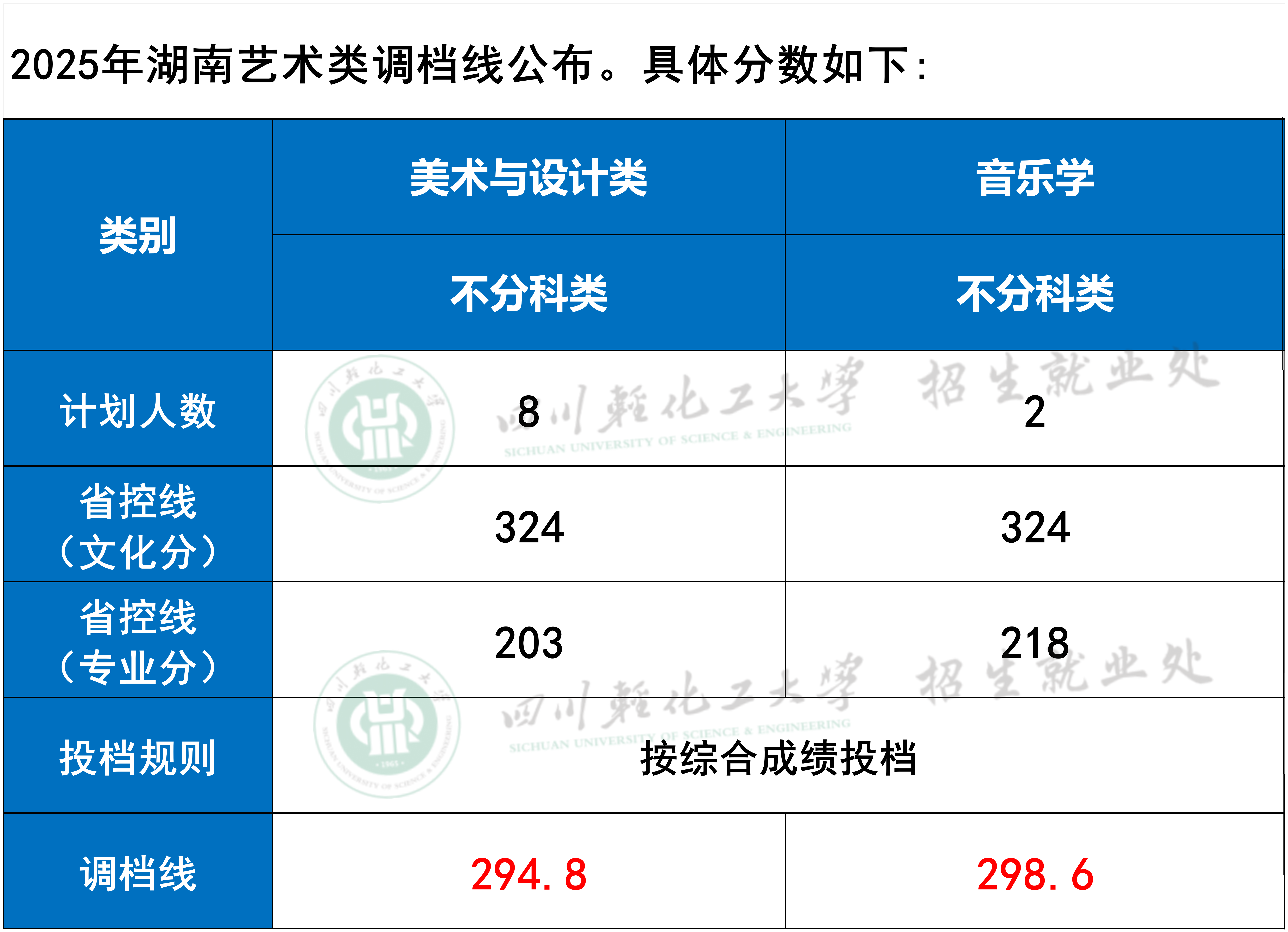 四川轻化工大学2025年湖南艺术类调档分数线公布