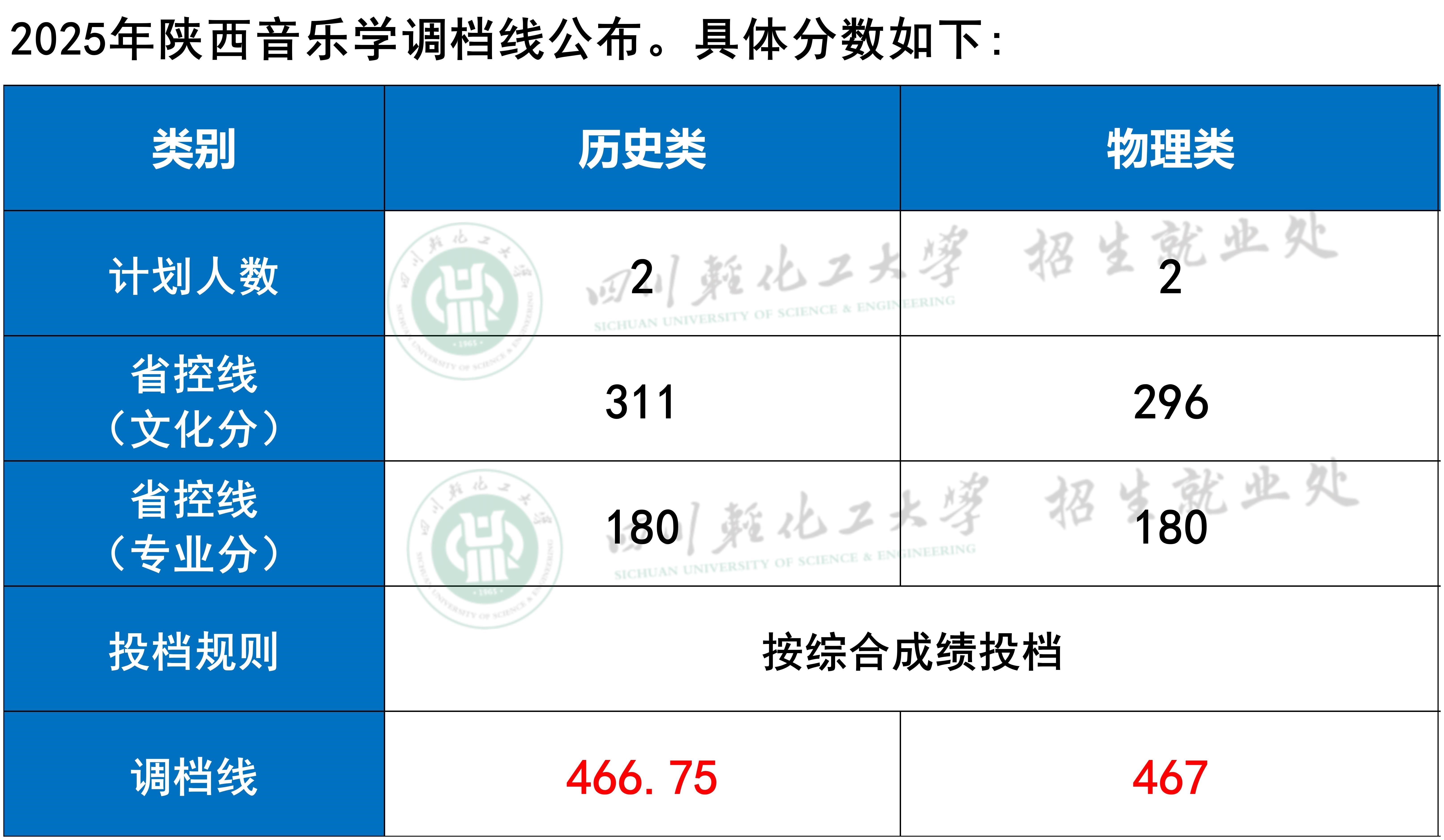 四川轻化工大学2025年陕西音乐学调档分数线公布
