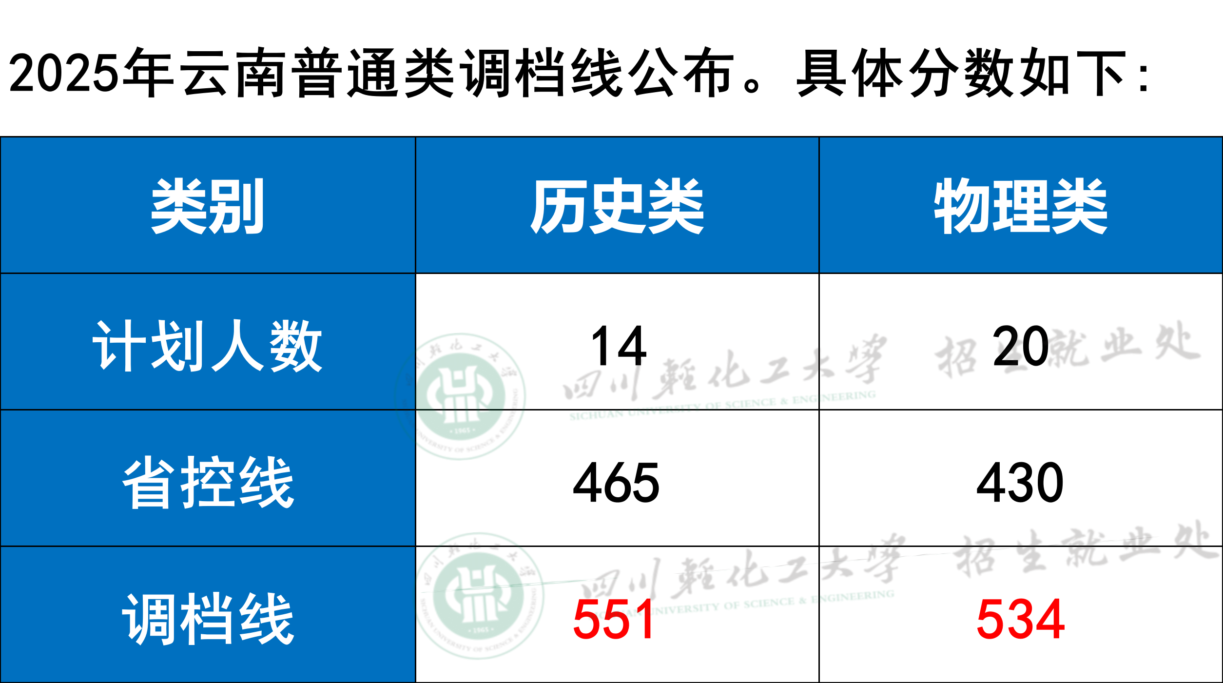 四川轻化工大学2025年云南普通类调档线公布