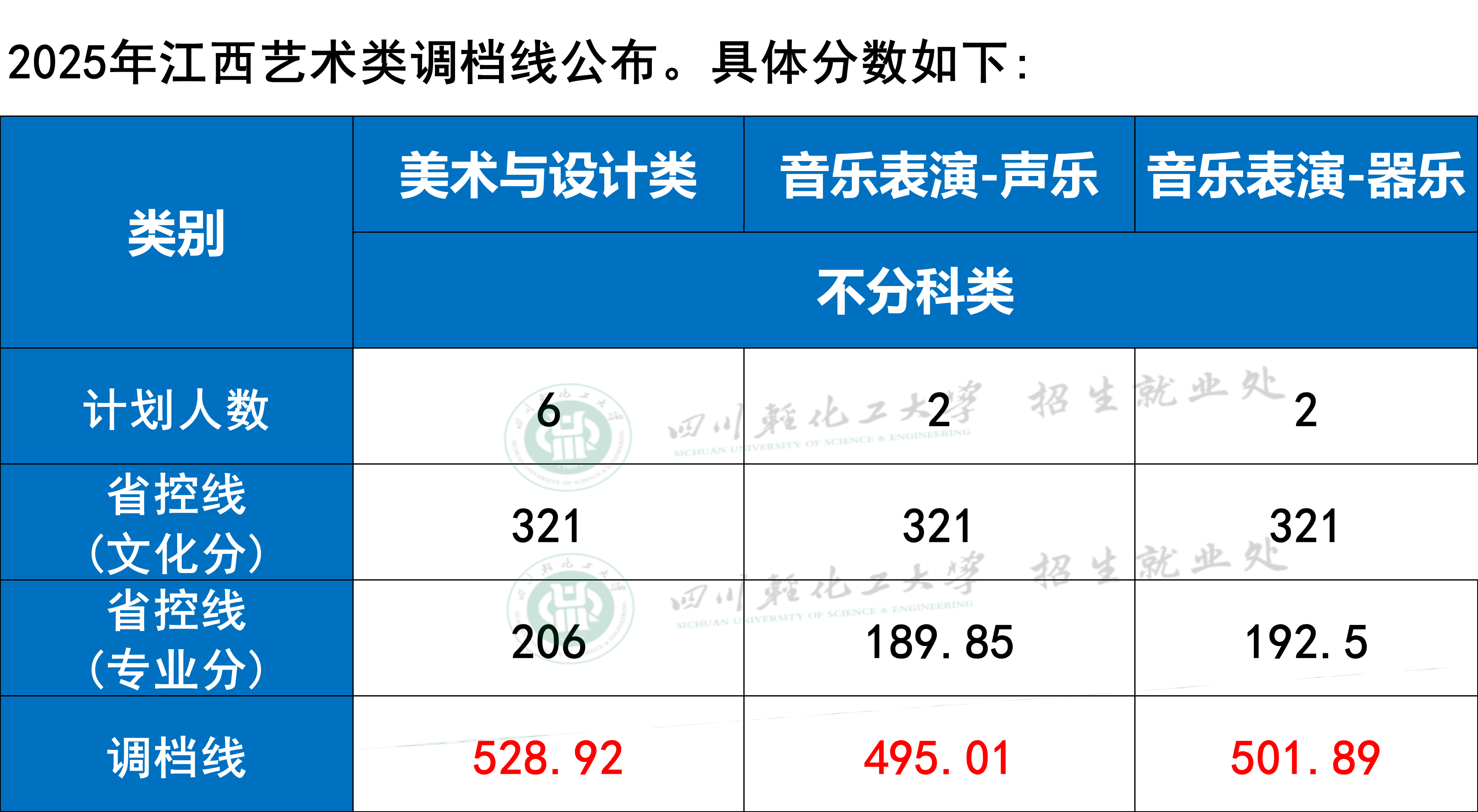四川轻化工大学2025年江西艺术类调档线公布