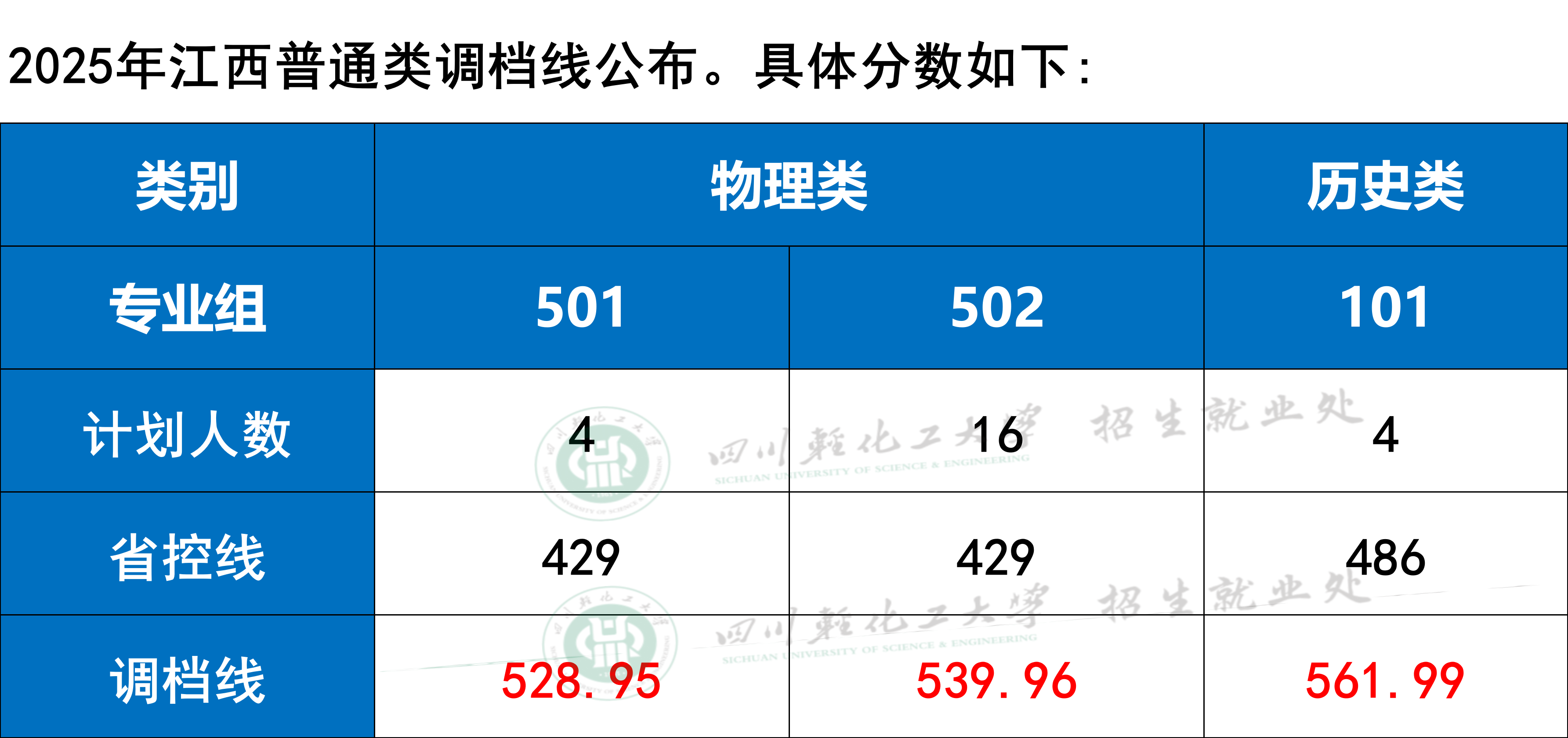 四川轻化工大学2025年江西普通类调档线公布