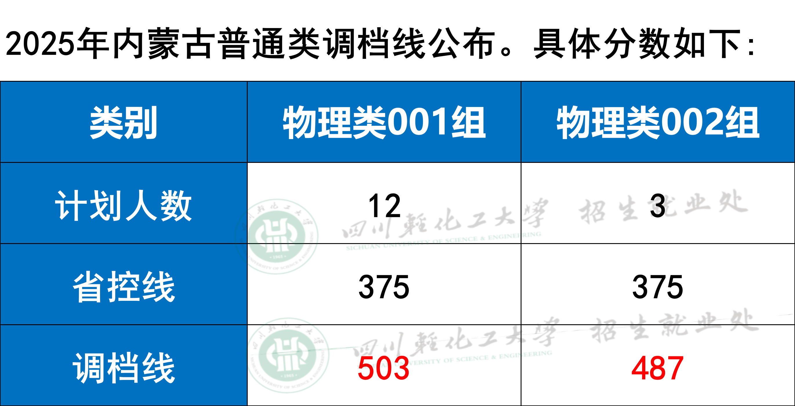 四川轻化工大学2025年内蒙古普通类调档线公布