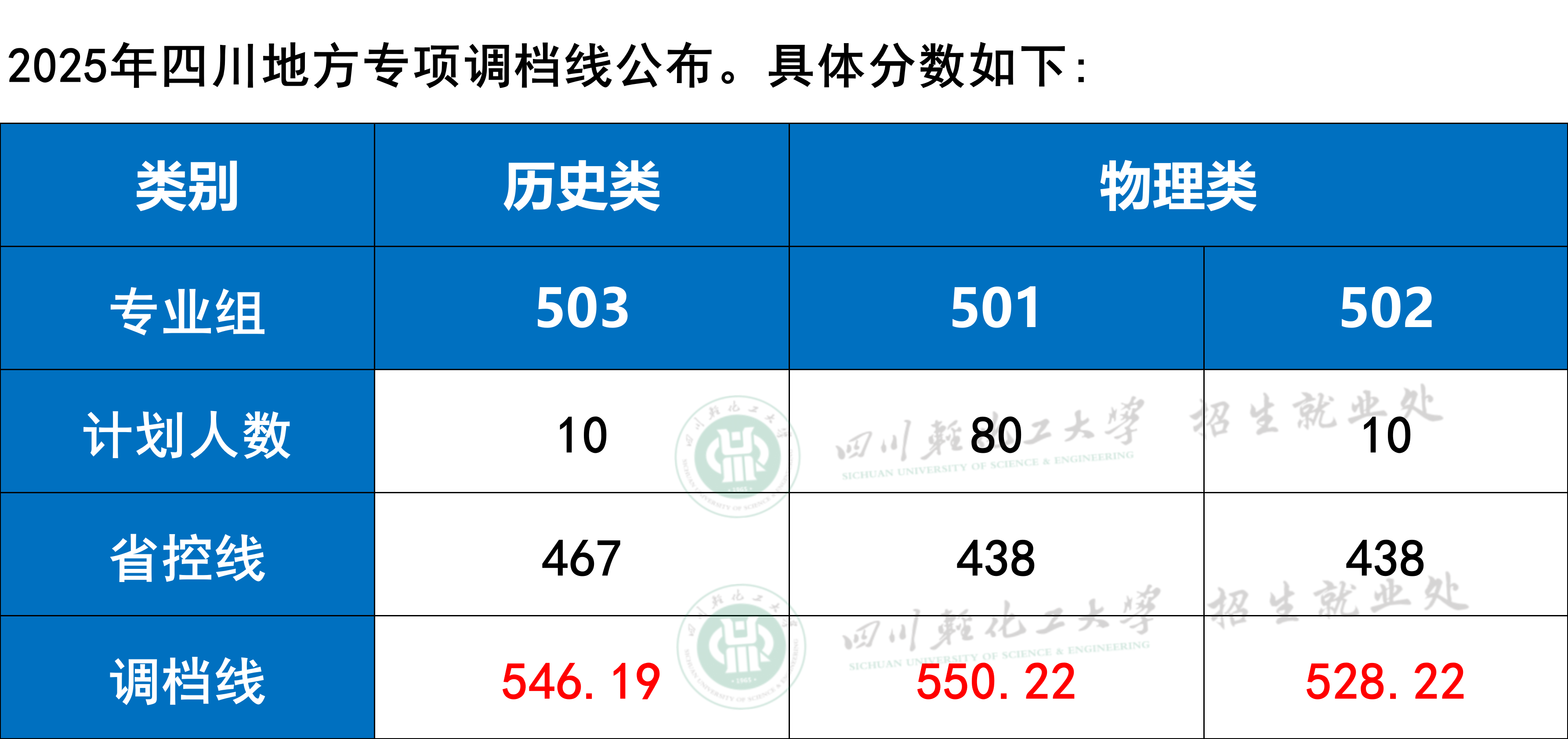 四川轻化工大学2025年四川地方专项调档线公布