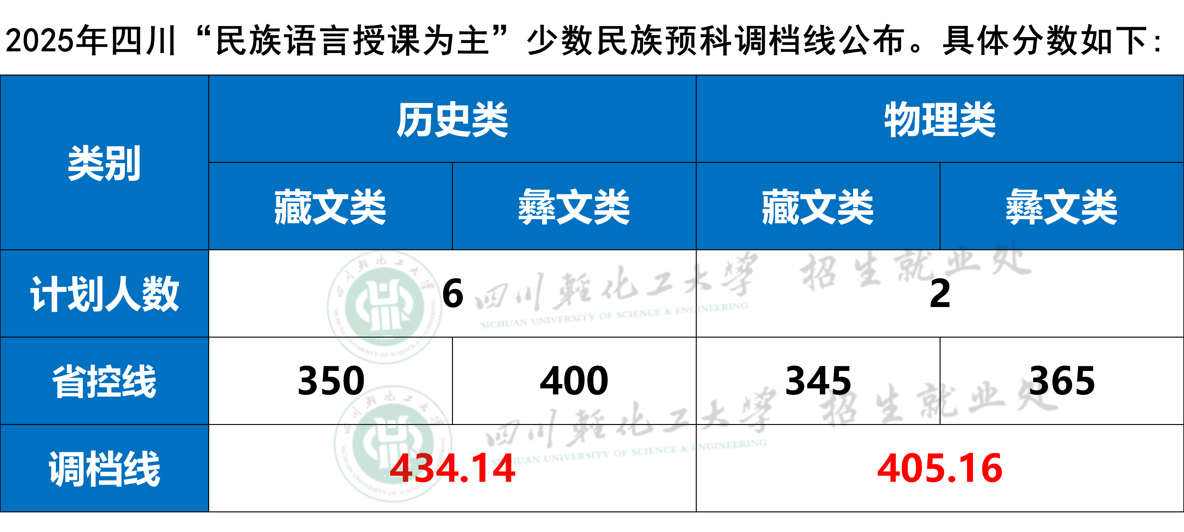 四川轻化工大学2025年四川“民族语言授课为主”少数民族预科调档线公布