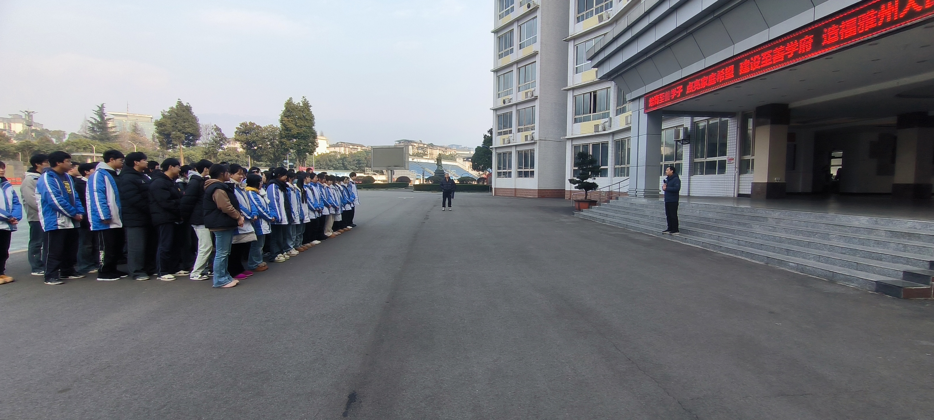 在校园操场上,梁川见到了该校2026届高三年级主任袁力和美术学院2018届毕业研究生罗玉。袁力主任代表学校对梁川一行到校宣传表示热烈欢迎。利用上午课间操时间,梁川向高三年级全体学生介绍了我校立足自贡、宜宾双城办学取得的成绩和优势特色学科专业发展现状,鼓励大家继续努力,取得令大家满意的成绩。随后,梁川专门向今年参加高考的美术专业毕业生宣讲美术学院本科和研究生办学发展历程与专业设置情况,希望学生们将我校美术学院作为优先报考的院校。